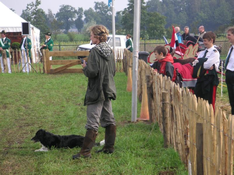 Behalve de gevorderde honden waren er ook jonge honden aan het werk te zien. Hiermee kreeg het publiek ook een kijkje in het trainingsprocess van een schapendrijvende border collie. |