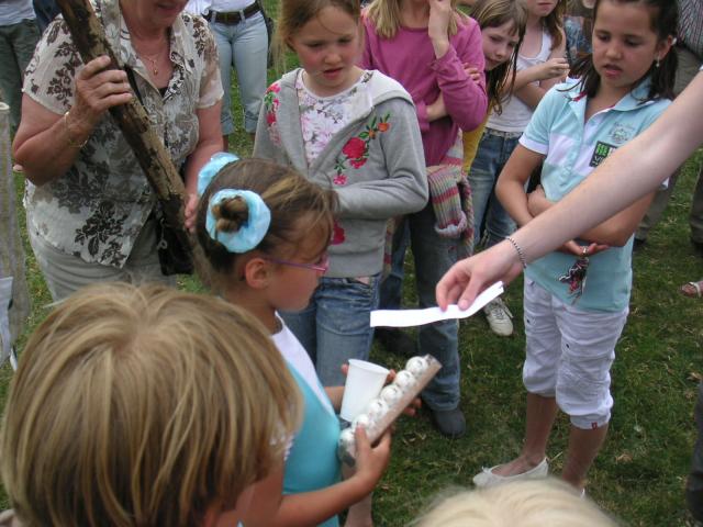 Voor jong en oud: schat het gewicht en vul je antwoord in en deponeer het in de emmer. En dan maar wachten op de uitslag straks om 15:00.