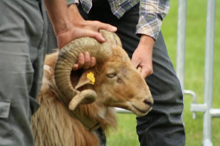 Nieuw dit jaar waren de raspresentaties in de centrale ring. Als keurmeester van Schoonebeeker en Drentse heideschapen was ik (Erica) gevraagd een leuk verhaal te houden over deze rassen. S'ochtends waren de ooien aan de beurt en s'middags de imposante de rammen.